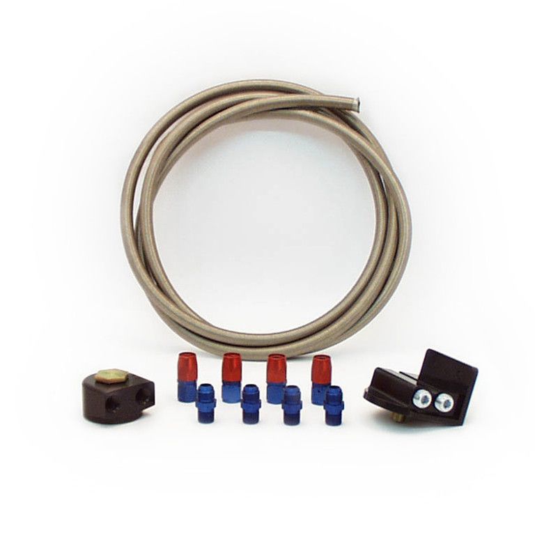 *Includes a 90 degree rotating billet aluminum block adapter, a billet aluminum remote filter mount, 8 feet of -10 stainless steel braided hose, and all of the necessary fittings