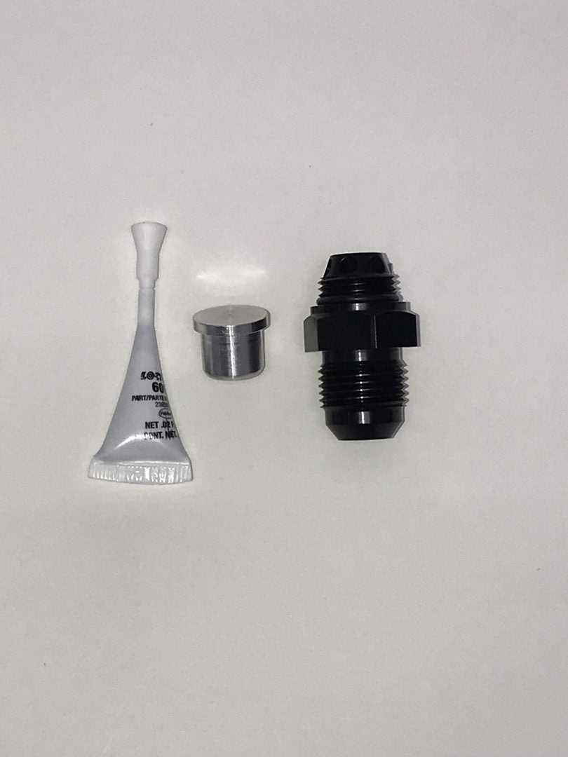 There is a service port found in the back that is removed and this fitting replaces it allowing the end user to cap off the side port making the pump setup that much smaller. We used a -10an fitting to ensure that the same amount of flow is going back into the pump to feed it from your reservoir. The pump side of the fitting has a unique dish in it to mimic the OEM service port fitting. We drilled a series of holes to ensure there is zero restriction on the return line. This return port kit from PBH comes with the AN fitting, O-ring seal, retaining compound and plug for the OEM port.